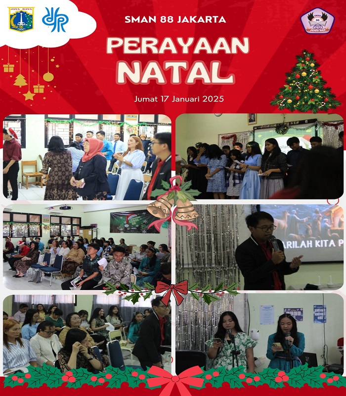 Pada 17 Januari 2025, SMAN 88 Jakarta menyelenggarakan perayaan Natal yang dihadiri oleh siswa, guru, staf, dan orang tua. Acara ini bertujuan untuk mempererat tali persaudaraan dan meningkatkan semangat kebersamaan di antara warga sekolah.