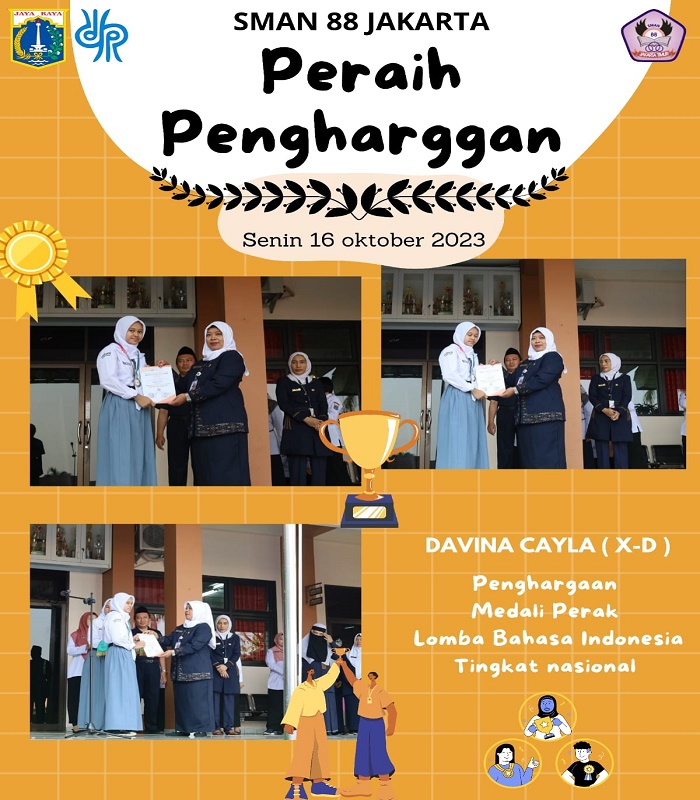 Selamat dan sukses kepada peserta didik SMAN 88 Jakarta yang telah mendapatkan penghargaan dan mengharumkan nama baik SMAN 88 Jakarta